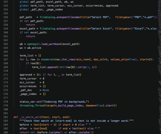 A desktop tool to help authors prepare an index. After specifying a list of terms in an Excel spreadsheet, the program will automatically find and highlight each term in the pdf, allowing you to review the term and approve it or skip it using keyboard shortcuts. Approved terms are recorded in the spreadsheet in the…